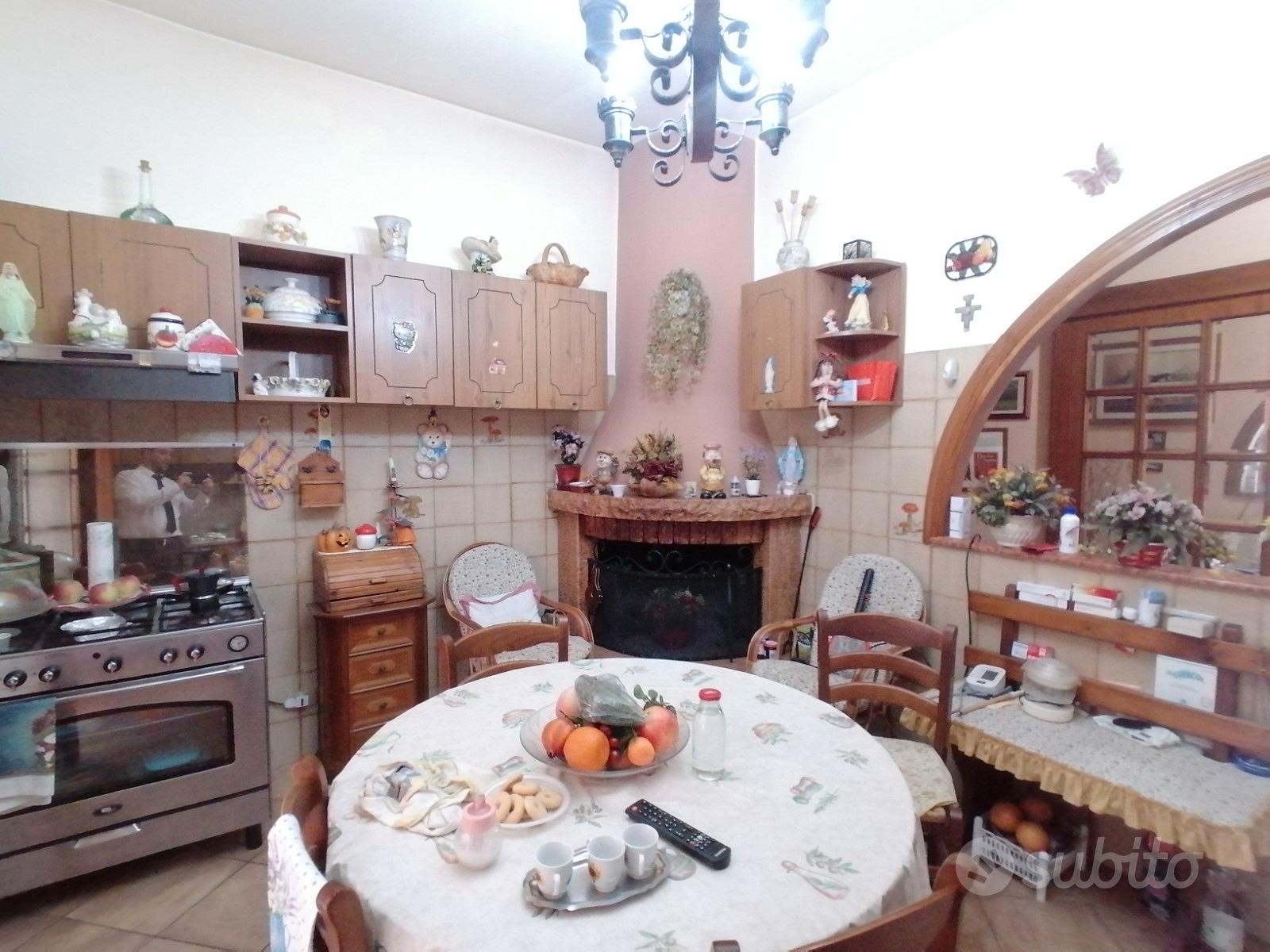 Piano terra: ampio ingresso-salone di rappresentanza, disimpegno su cucina abitabile con camino, ampio salone verandato, corridoio, camera matrimoniale, cameretta, bagno finestrato con vasca, per un totale di mq 145 residenziali-abitativi;